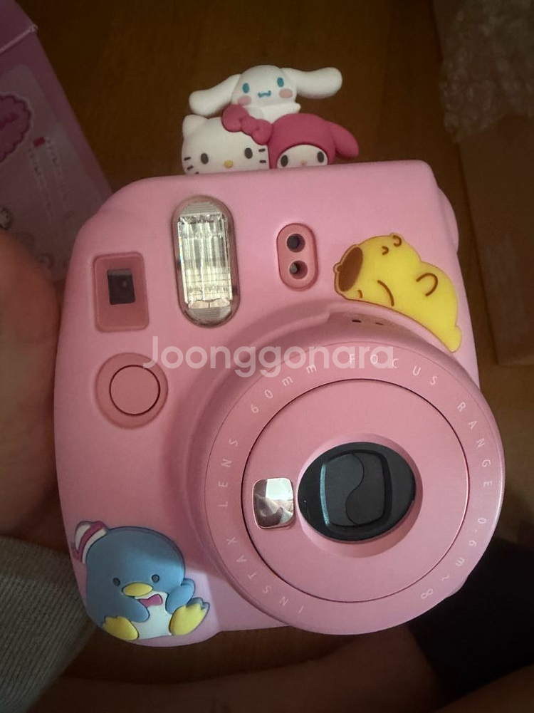 산리오 캐릭터 콜라보 인스탁스 미니 안에 핑크 카메라가 있고 실리콘 커버가 산리오 친구들이에요 안에 키티 필름도 넣어드려요 (테스트용으로 1장 써서 9장 사용 기능) 작동 이상 x 구성품은 목걸이 뱃지2개 렌즈캡있었는데 뱃지 1개랑 렌즈캡은 없습니다 박스 있어요 박스는 살짝 찢어짐 있습니다 컨디션은 사진 참고하심 돼요 제가 봤을 때는 육안으로 보이는 하자는 없는 것 같아요
