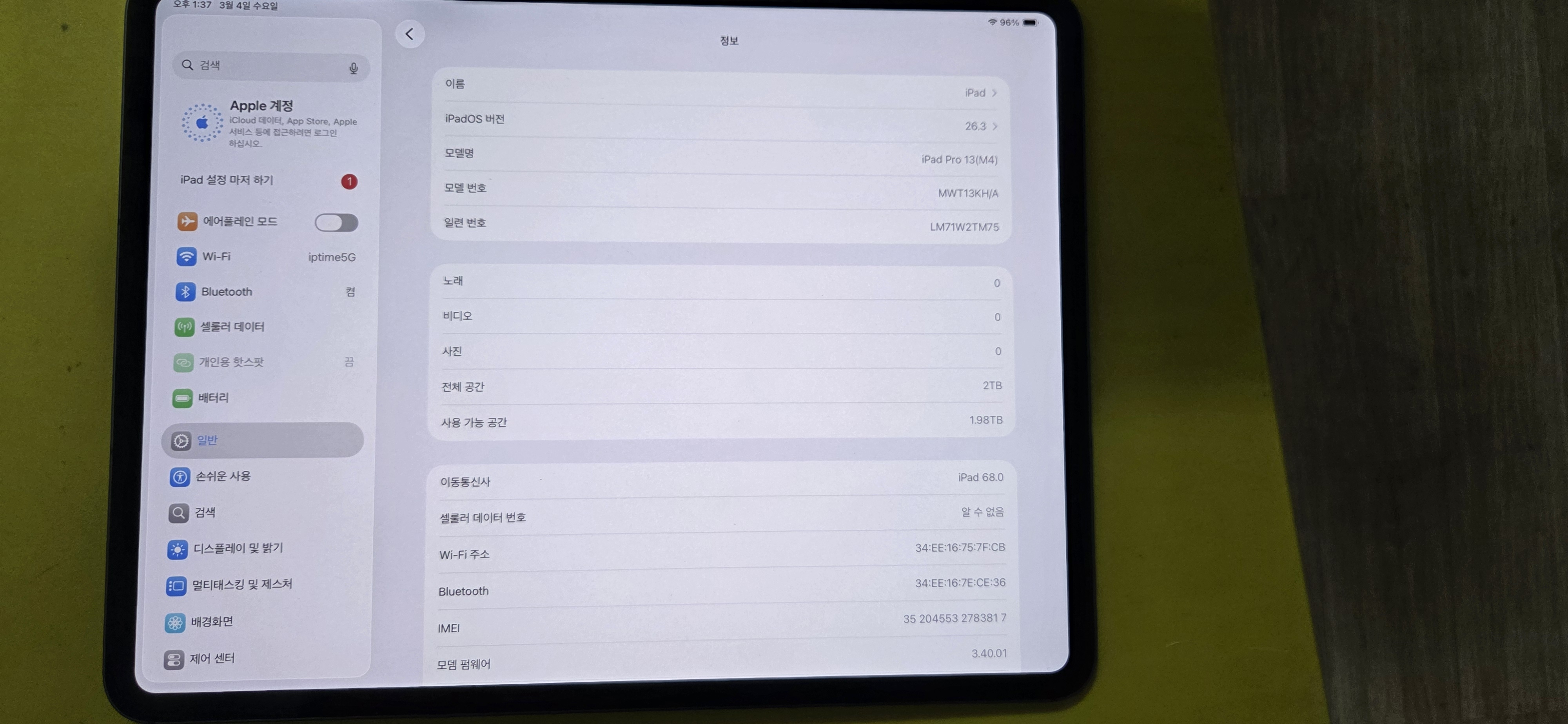 아이패드 프로 13인치 M4 판매합니다. 저장용량 2TB 대용량 모델이라 영상, 사진, 파일 많이 저장하시는 분들께 좋습니다. 모델: 아이패드 프로 13 M4 저장용량: 2TB 색상: 스페이스 그레이 정상작동 / 초기화 완료 큰 찍힘 없이 전체적으로 깔끔한 상태입니다. 업무, 영상 시청, 필기용으로 사용하기 좋습니다. 고가제품이라 직거래 선호합니다. 박스는 따로 없구여 충전기만 있습니당. 쿨거시 네고 가능이에요