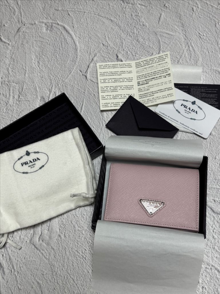 프라다 단종 사피아노 트라이앵글 로고 반지갑 알라바스터(베이비핑크) 판매 합니다 예전에 예랑가랑님 유튜브 채널에서 예린님께서 프라다 지름리뷰에서 구매한 지갑과 동일한 모델입니다 그때 예랑가랑 유튜브보고 꽂혀서 바로 구매했었는데 제가 검정 처돌이라 생각보다 잘 안쓰게되어 판매합니다 현재 프라다 공식홈페이지 가보면 동일한 모델은 못찾아서 단종 제품 같아요 프라다 사피아노 가죽 중 역대급 예쁜 베이비 파스텔 핑크입니다 + 실버로고의 조화가 진짜 예뻐서 뒤도 안돌아보고 샀던거예요 실사용 4회정도 입니다. 여행갈 때 기분내려고 몇 번 썼던거라 실사용 회수 적고 사용감도 적습니다. 물건도 워낙 함부로 쓰지않고 귀하게 쓰는 타입이라 컨디션은 정말 좋아요 물건 귀하게쓴다는 말처럼 구매당시 박스부터 품질보증서 당연히 있고, 더스트백, 지갑 사이사이 꽂는 간지까지 다 있습니다 쇼핑백만 없어요 다만 제가 한번 떨어트린 적이 있어서ㅠ 가죽이 살짝 벗겨진 곳이 있습니다ㅠ 그리고 로고부분에도 스크래치가 살짝보여 해당 부분들 사진으로 찍어서 올렸으니 확인 해주세요! 지갑 구매했던 롯백 잠실 프라다 가서 물어보니 가죽은 수선대상이 아니라고하더라구요ㅠ 가죽은 불가능하지만 지퍼나 로고 같은 부분은 유상 AS가능한듯하니 혹시 수선이 필요하시면 헛걸음하지 않도록 프라다 매장 방문 전 미리 수선가능여부 확인해보시길 추천드려요 저는 냅따 매장갔다가 가죽수선 불가능하대서 터덜터덜 걸어나왔습니다 중고나라 사진등록이 최대 10장까지라 못올린 사진있어요