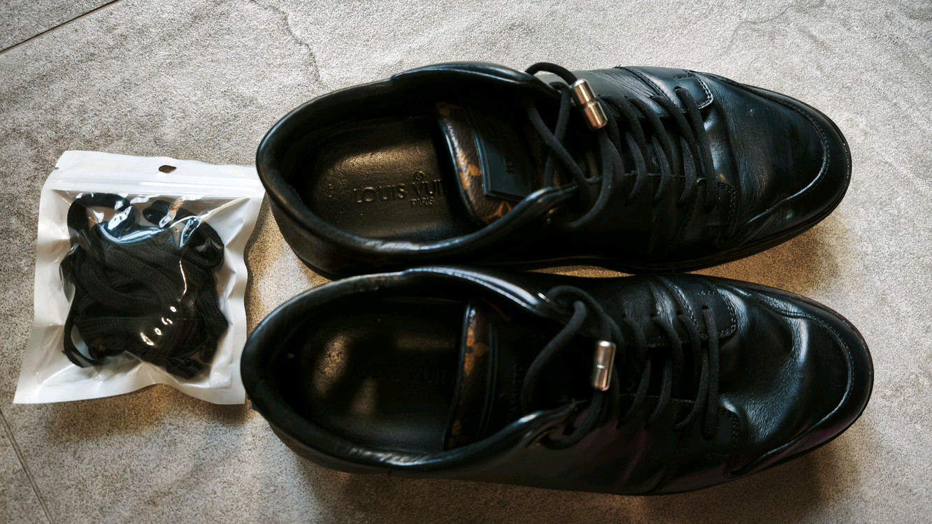 개인정보(거래정보)를 주고받는 행위는 사기에 노출될 수 있으므로 즉시 중고나라로 신고해 주세요루이비통 정품 남성용 블랙 가죽 스니커즈예요. 착용감 있지만 전체적으로 상태 양호합니다. 비닐팩 안에 든 끈이 정품입니다. 루이비통 더스트백과 박스도 있습니다. 사이즈 5.5