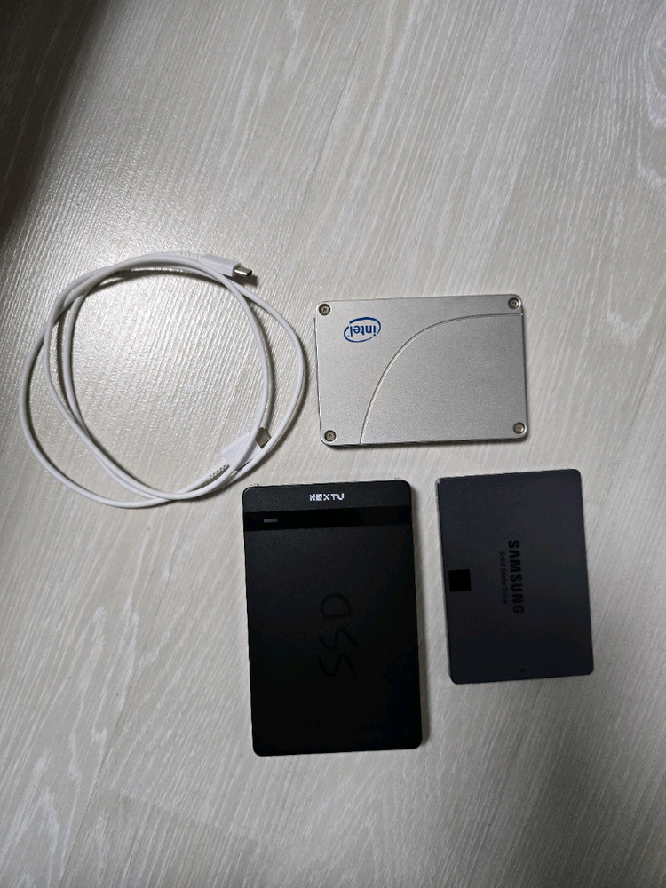 ssd는 각각 120기가, 80기가이구요, 상태 매우 좋습니다. 사진 9번 10번에 수명과 사용시간 확인 가능하십니다. 케이스에 둘 다 호환 되며 2.5인치 하드면 ssd아니라도 장착 호환 다 됩니다. c to c 케이블도 함께 드립니다. 외장 케이스에 매직으로 ssd 써놓았는데 안 지워집니다ㅜ.ㅜ 각개는 안 팔구요 전부 일괄로만 판매합니다. 직거래는 3호선 원흥역 인근에서 가능하며 택배거래, 안전거래 다 됩니다. 선입금 택배시 배송료 제가 부담하고 보내드립니다.
