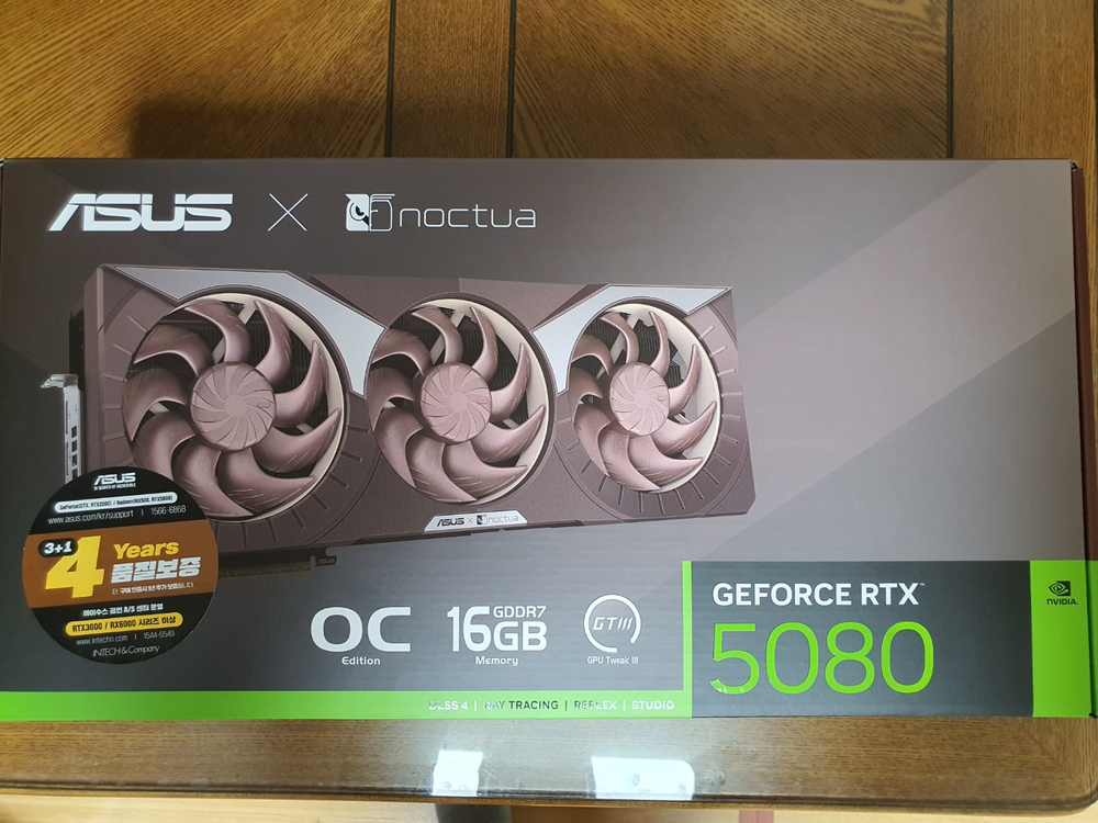 ASUS 지포스 RTX 5080 OC D7 16GB NOCTUA 인텍앤컴퍼니 26년 4월 국내정품 구매 + 영수증 보유 (1년 추가등록가능 -> 총 4년 가능) 5호선 군자역 직거래, 선입금시 택배거래 배송비 무료 (거래내역 및 후기 많습니다) 네고 및 교환 문의 정중히 사절합니다
