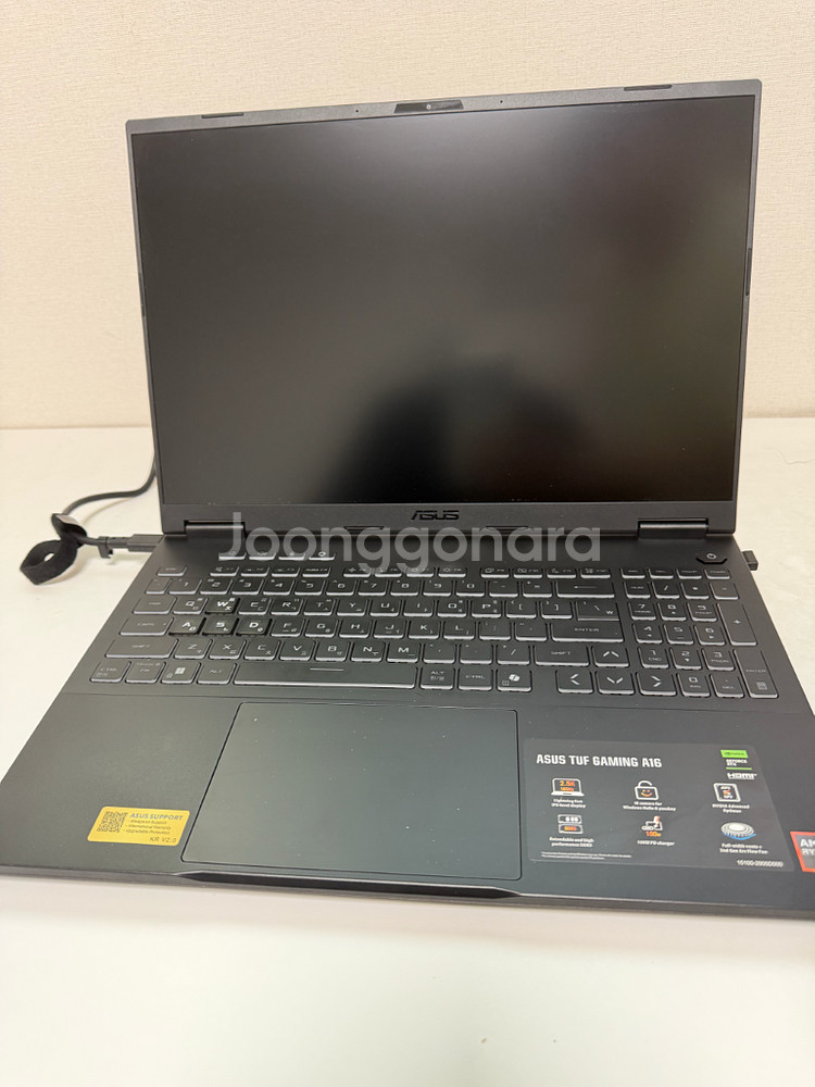 ASUS TUF Gaming A16 노트북 팝니다. 실사용 얼마 하진 않았구요. 충전기쪽 사용감 제외하면 전체적으로 깨끗합니다. 라이젠9 8940hx 16코어 32쓰레드 제품을 탑재하여 성능도 괜찮고 온도도 준수합니다. 5070모델로 게임 또한 웬만한 게임은 옵션 건드릴 필요 없이 60프레임 이상 뽑아냅니다. 모니터는 QHD/165hz 이며, 웹서핑 시에도 체감 가능합니다. OS는 윈도우 11프로 인증 되어 있습니다. 램/SSD는 각각 16gb / 512gb 입니다. 구성은 풀박 구성입니다.