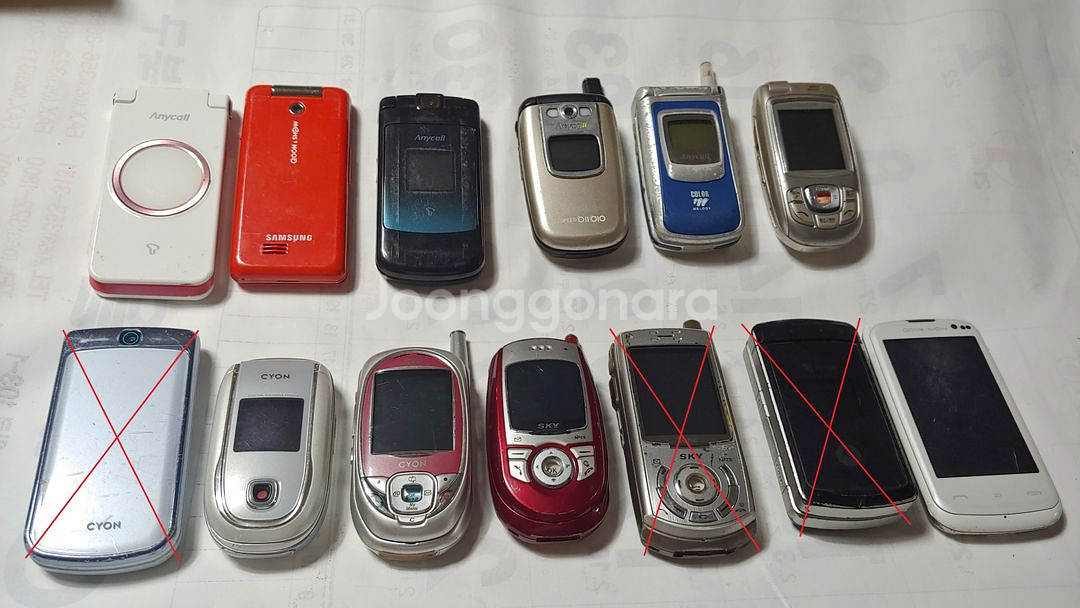 구형 피쳐폰 (휴대폰 애니콜,싸이언,모토로라,스카이등) 10종 팝니다. 구형 피쳐폰 휴대폰 10종 (삼성 애니콜,LG CYON,팬텍, SKY,모토로라폰등) 전원,작동 상태등은 확인X이고 폰기기들만 있습니다.. *(일괄등의 사진에 빨간색 X표시들은 낱개판매완료들 제품사진입니다..)* (기기상태등은 사진참조.) 수집,디피,부품용등 입니다.. 일괄판매 우선이고 개별은 가격등 상이합니다... 가격:일괄: 189000원. (개별시: 가격상이합니다.) 기본사항은 적어놨고 가격등의 질문은 사양이고 (가격네고X.) 거래는 직거래시 (대구 북구 태전삼거리,태전역근처 가능합니다.) 택배거래시 착불:(편의점택배,우체국) OR 반값택배(2500원.):(일괄시 반값택배는 X.) 선불:(4000원,일괄시:5000원.(편의점,우체국택배),(GS반값택배:2400원,CU:2500원.) 직거래시 (대구 북구 태전삼거리,태전역근처 가능합니다.) 거래후 반품X,환불X 입니다.. 문의등은 문의 주시면 답변드리겠습니다.