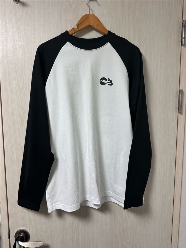 로고가 포인트인 화이트&블랙 라글란 티셔츠예요. 앞뒤로 동일한 로고 디자인이 깔끔하고 스타일리시해요. 상태 양호한 제품입니다. 상태 아주 좋습니다.