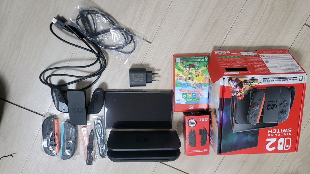 구매는 올해 1월24일에 했습니다. 구성품 모두 있는 풀박스 상품이구요, 상태도 좋습니다. 보호필름도 부착되어 있구요. 본체(마리오카트): 68만 동물의 숲(스위치2 버전): 5만5천 일괄구매시 73만원에 드립니다. 010-9475-1026 여기로 연락주세요.