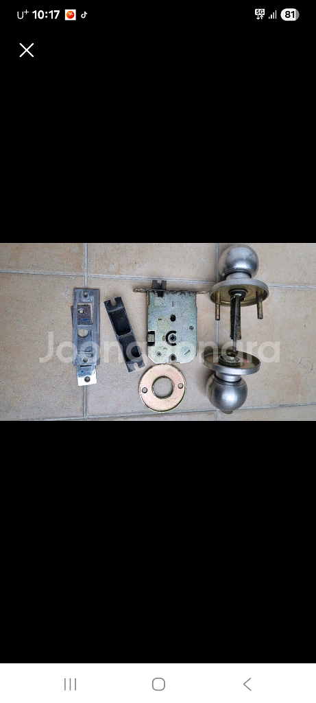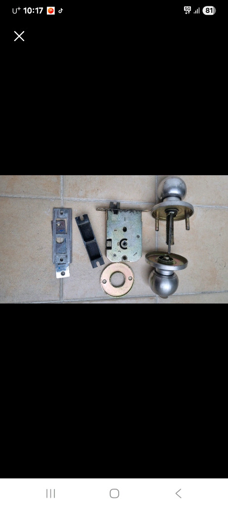 개인정보(거래정보)를 주고받는 행위는 사기에 노출될 수 있으므로 즉시 중고나라로 신고해 주세요문도어 부품들이에요. 도어락과 함께 구성되어 있고 사용감은 있지만 기능상 문제없을 것 같아요. 수리나 교체용으로 활용하시면 좋을 듯해요.