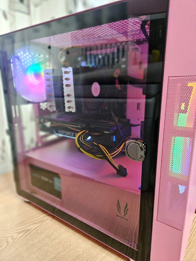 PC 본체 GTX 1660 SUPER 판매합니다. - 감각적인 핑크색이라 깔끔하고 예쁩니다. - 내부 팬에 RGB 조명이 들어와서 더욱 멋져요. - 깔끔한 디자인으로 어떤 공간에도 잘 어울려요. - 측면 스윙도어형 강화유리 케이스로 부품교체 및 점검이 용이함. - 사무, 영상시청, 인터넷서핑 등 - CPU: Intel(R) Celeron(R) G5905 CPU @ 3.50GHz - CPU쿨러: TTA3000 Double tower 6 heat pipe 4Pin PWM 2 fan (TDP 130W) - Mainboard: Biostar H510MH 2.0 (10/11세대 CPU 지원) (NVMe PCIe 4.0/3.0 x4 SSD 지원) - Graphics: 이엠텍 지포스 GTX 1660 Super Storm Dual DDR6 6GB - RAM: 삼성 DDR4 PC4-2666V 8GB(4+4) - SSD: 120GB - Power: Zalman 500w 83+ - Case: 3RSYS R480 (측면 스윙도어형 강화유리 케이스) - OS: Windows 10 pro 택배: X 직거래: 철산도서관
