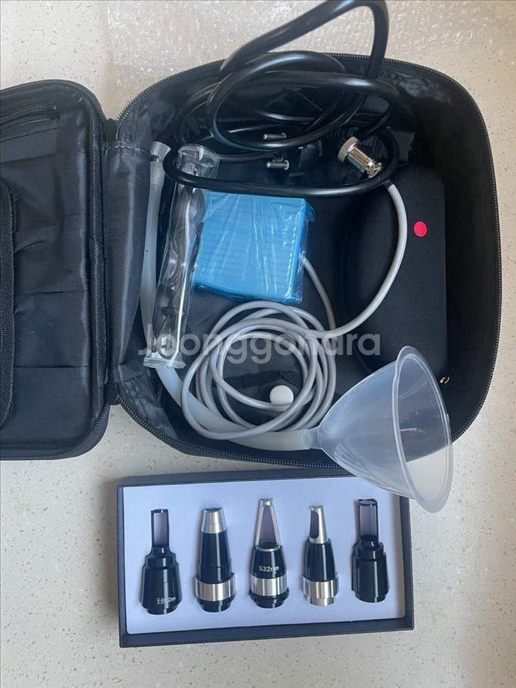 26.4.15일 받아서 16일 뜯어본 새상품입니다. 사진찍으려고 뜯은것 외 아무것도 해보지않은 새상품입니다. 직거래를 더 선호하긴하지만 택배 원하시게되면 착불이시구요. 저는 사용하지 못하게되어서 판매합니다. 구성 렌즈5개(토닝, 532-2, 1064-2), 안경(시술자,고객용) 사기 지시는 분들 다 알아요