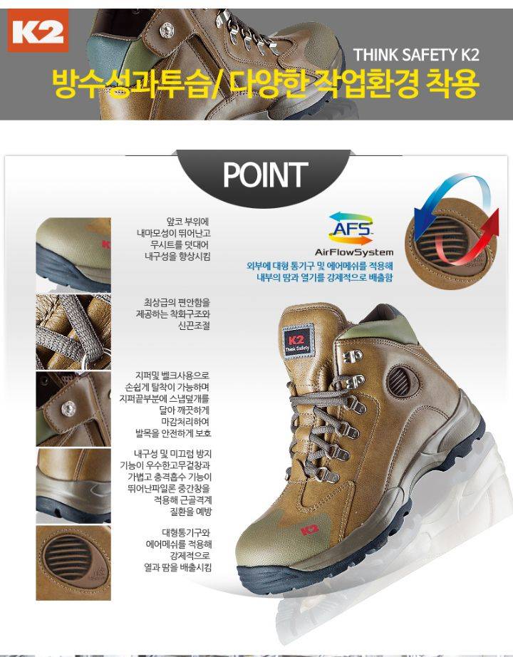 k2-36 안전화 270 방수 지퍼 통풍새제품 k2안전화
