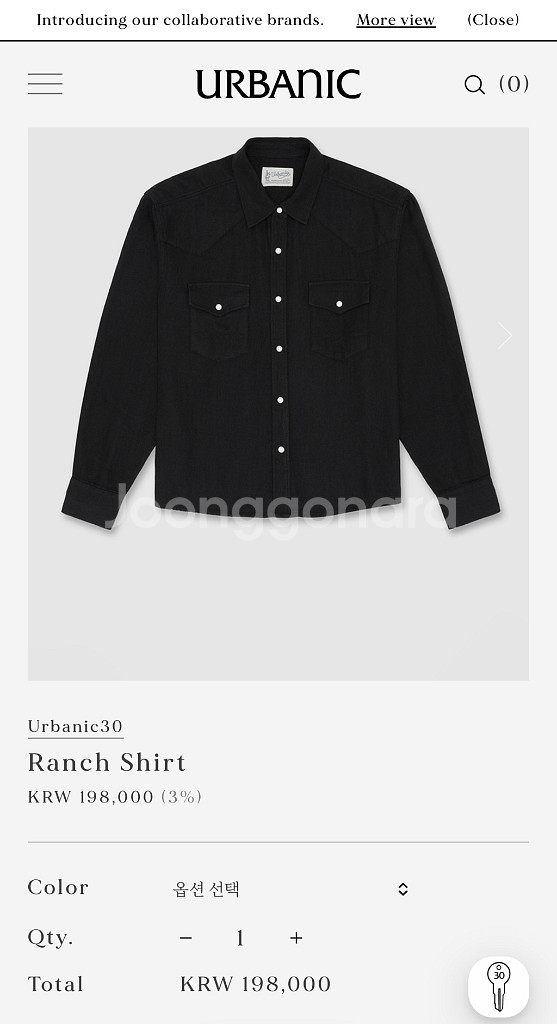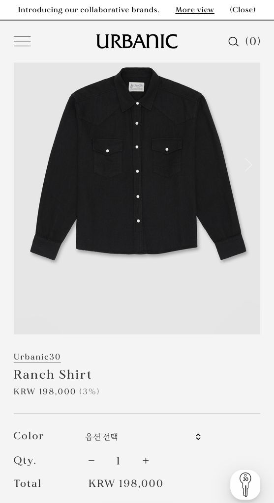 (미개봉 새상품) 얼바닉30 Ranch Shirt 블랙