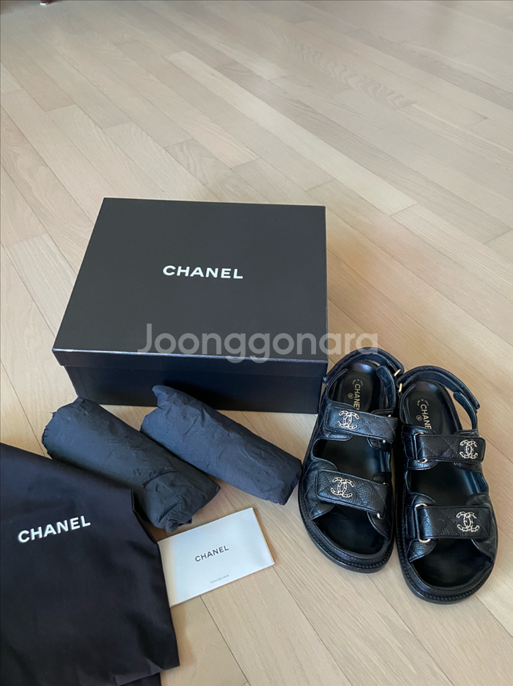 샤넬 블랙 캐비어 벨크로 샌들 36.5 입니다. 사진에 보이듯 로고 지워짐 전혀없고 구입하고 바로 비브람 작업해서 신었고 눈에띄는 스크래치,찍힘 없습니다. 인보이스는 따로 보관하지않았고 나머지 부속품은 다 있습니다. (셀러 명함포함) 사이즈 미스로 몇번 신지않아 상태 매우 좋아요. 가품은 구입하지도 사용하지도않습니다. 반품❌ 문의는 언제든 환영⭕️