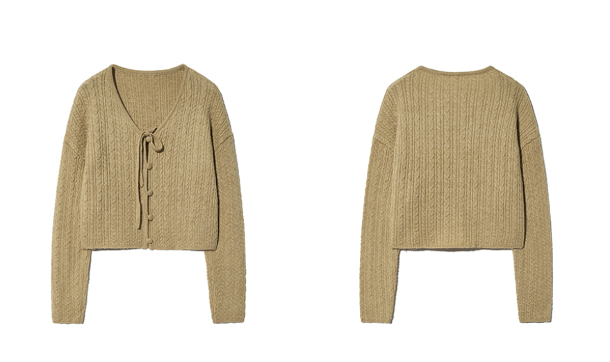 부드러운 니트 소재의 베이지 컬러 가디건이에요. 앞면에 리본 타이 디테일이 있어서 포인트가 되고, 크롭 길이라 스타일링하기 좋아요. 상태 양호한 중고 제품입니다. 1회착용했습니다 총장47 어깨56 가슴56 소매53 입니다