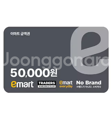 이마트/트레이더스/노브랜드 5만원금액권(잔액관리형) - 1매당 48,500원 유효기간: 2027-4-14 이용 가능매장 : 이마트/트레이더스/이마트 전문점 (노브랜드 직영점 , 일렉트로마트, 몰리스펫샵, 토이킹덤 ,베이비서클) 이용 불가 매장 : 이마트 문화센터 및 임대매장, 이마트 안양점 부천점 , 이마트24 , 이마트 에브리데이 , 노브랜드 일부 매장 제외 구매하실 수량 채팅주세요. 즉시 답신 드려요. (개편전까지는 중고나라카페 이용자여서 앱이력보다는 카페이력이 월등합니다)