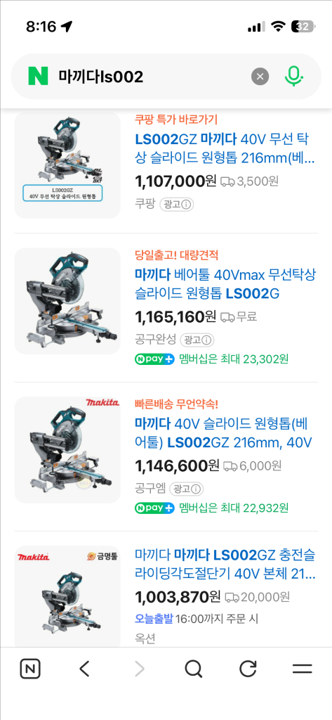 개인정보(거래정보)를 주고받는 행위는 사기에 노출될 수 있으므로 즉시 중고나라로 신고해 주세요마끼다 슬라이딩각도절단기ls002gz 팔거나 001gz로 교환합니다. 1년전 구매 사용횟수적음 상태S 저한테는 사이즈가 커서 작은사이즈로 교체하려고 합니디 연락주세요