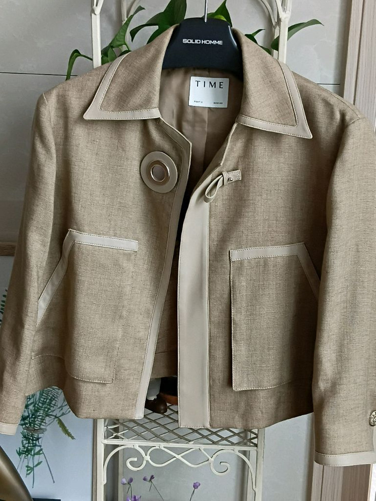 개인정보(거래정보)를 주고받는 행위는 사기에 노출될 수 있으므로 즉시 중고나라로 신고해 주세요TIME 브랜드의 베이지색 자켓입니다 독특한 잠금 장치가 포인트이며, 캐주얼하면서도 세련된 스타일을 연출할 수 있습니다 부드러운 고급진 마소재로 제작되어 착용감 좋아요. 가슴반품50 총기장46. 상태 아주 좋습니다. 7~8부 팔 기장.