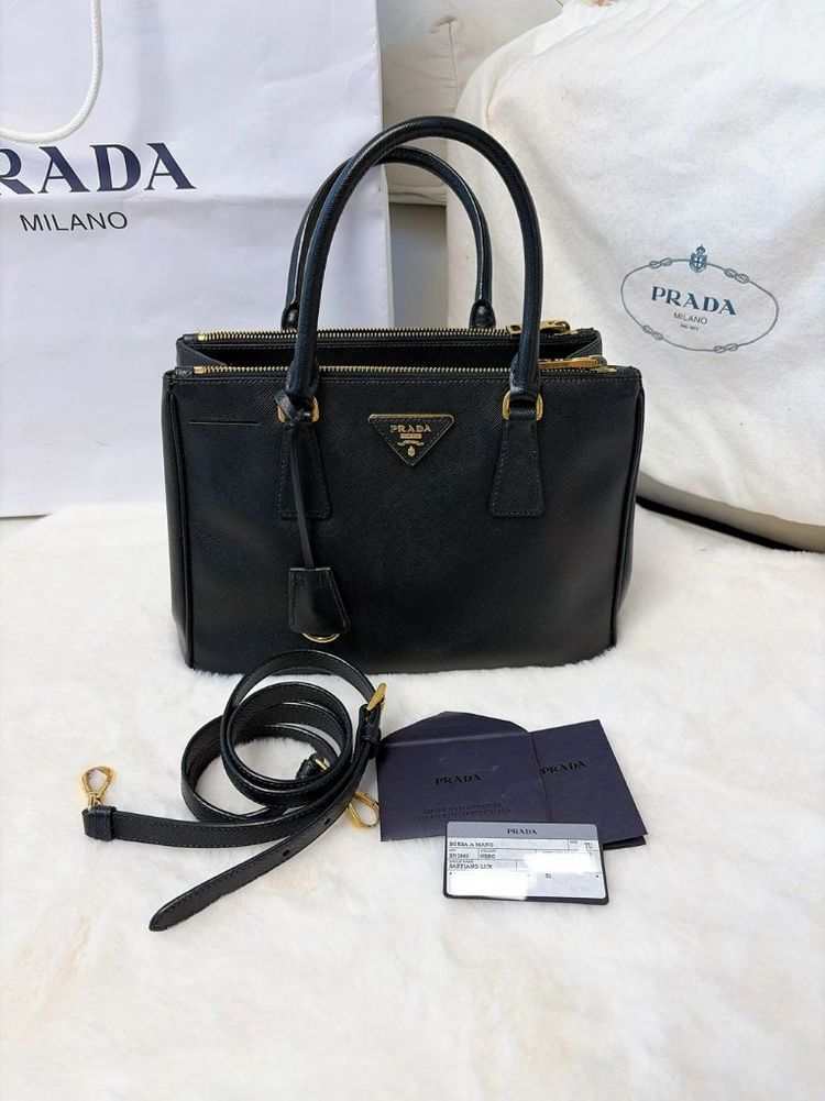 이탈리아 여행 중 프라다 매장에서 직접 구매한 가방입니다 정품인증카드 당연히 같이 있고 가방 상태 완전 최상입니다 캐쥬얼하게 입다보니까 별로 안 들었어요 • 모델명 : 프라다 사피아노 럭스 BN2863 • 구성품 : 가방 본체, 긴 가방끈, 더스트백, 보증서, 쇼핑백 • 사이즈 : 가로 28 세로 20 폭 12cm • 컬러 : 블랙 영화 미션임파서블에 나온 가방보다는 좀 작은데 오히려 좀 작아서 들기 좋아요 A4용지보다 약간 작은 사이즈로 일반적인 소설책 2-3권은 들어가는 사이즈예요 실용적이기도 합니다 프라다 큰 종이쇼핑백 필요하시면 (조금 지저분하지만) 같이 드려요