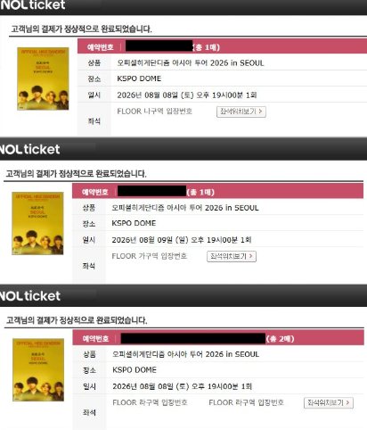 히게단 오피셜히게단디즘 내한 콘서트 스탠딩 / 지정석 명당 단석 연석