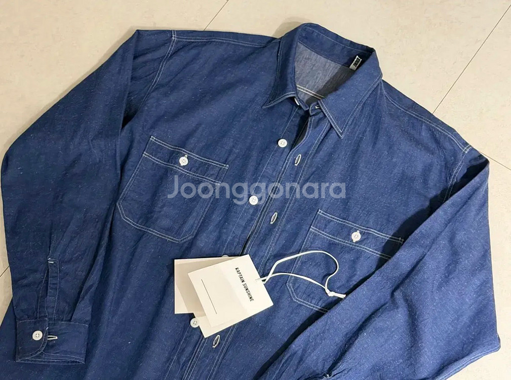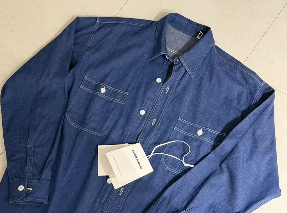 개인정보(거래정보)를 주고받는 행위는 사기에 노출될 수 있으므로 즉시 중고나라로 신고해 주세요Kaptain Sunshine 인디고 블루 워크 셔츠입니다. 택 달린 새 상품이며, 사이즈는 40입니다. 판매금액은 33만원입니다.