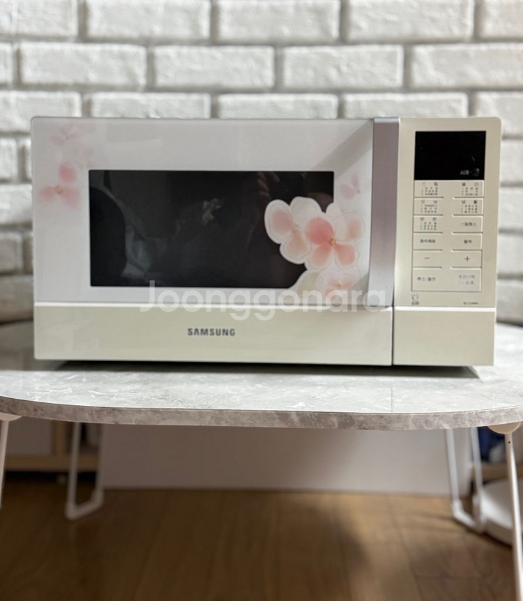 깔끔한 디자인의 삼성 전자레인지예요~ 사진에서 보이는 것처럼 예쁜 꽃무늬가 있어서 주방을 화사하게 만들어 줄 거예요✨✨ 내부도 깨끗하게 사용해서 바로 사용하시기 좋아요!!!