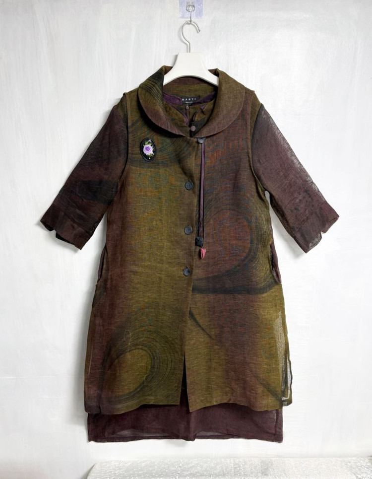 모시 조끼, 모시 원피스 세트 판매 합니다. 시중에 길이감 있는 모시 조끼 하나의 가격만해도 35만원대 이상 입니다. 사이즈는 라지(L) 입니다. 전체적으로 여유있는 착용감 입니다. 66반~77 사이즈 추천 드립니다. 추천 사이즈 일 뿐, 개인마다 체형이 다르며 개인마다 원하는 핏이 다르므로 상세사이즈 기재해 두었습니다. 가지고 있는 옷과 사이즈 비교 바랍니다. ▪️모시 조끼 여유롭게 떨어지는 풍성한 실루엣으로 고급스러운 무드를 내어드리는 상품 입니다. 그라데이션 색감과 무늬로 고급스러움을 더한 상품 입니다. 단아하면서 여성스러운 부드러운 라인의 카라와 매듭 장식으로 완성도를 더하였습니다. 매듭 장식은 조끼의 무늬와 잘 어우러지는 색감의 인견으로 만들어졌습니다. 가볍고 시원한 고시감있는 모시로 여름 내도록 쾌적한 착용이 가능합니다. 앞 단추로 간편하게 탈착이 가능합니다. 양 사이드 아래에는 부담스럽지 않은 트임이 있어 활동이 편합니다. 어깨부터 암홀 그리고 그 아래 트임까지 안쪽으로는 한번 더 테이핑 처리가 되어있어 조끼의 각이 잘 유지 됩니다. *상세사이즈 - 어깨단면(뒤에서 재었을 때) 38cm, 가슴단면 54cm, 양 사이드 트임길이 23cm, 총기장(윗 카라 포함) 105cm, ▪️모시 원피스 세트인 모시 조끼와 함께 입으면 부티나면서 근사한 분위기를 담아낼 수 있는 모시 원피스 입니다. 목선이 예뻐보이는 프릴 카라 브이넥 디자인으로 여성스러움을 강조합니다. 원피스 자체에 허리라인이 들어가 있어 날씬해 보입니다. 항아리 핏으로 체형 커버에 좋으며, 우아해 보입니다. 오른쪽 아래에는 꽃잎의 자수가 새겨져 있어 포인트가 됩니다. 뒷 지퍼로 간편하게 탈착이 가능 합니다. 안감 있습니다. * 상세사이즈 - 어깨단면(뒤에서 재었을 때) 40cm, 가슴단면 52.5cm, 팔길이 44cm, 총기장(앞 122cm / 옆 125cm) 브로치는 코디용 입니다. 안쪽 택은 사진의 택이 전부 입니다. 새것같은 컨디션으로 아주 깨끗합니다. 세트로 드레스업 하기 좋은 상품으로 소중한 자리, 귀품 있는 멋을 뽐내어 보시길 바랍니다. 택배거래 합니다(+택배비 4000원) 중고거래이며 개인간 거래로 구매후 교환, 환불, 반품, 취소 절대 불가합니다. 신중히 구매해주세요.