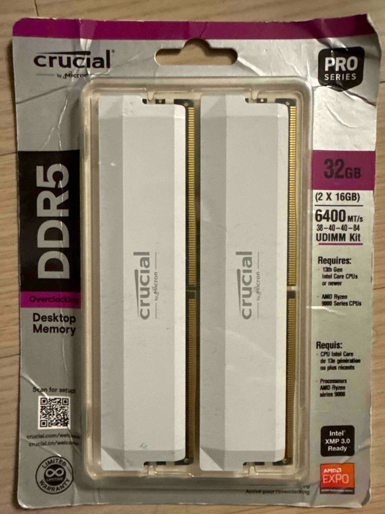 크루셜 프로 DDR5 RAM 32GB 키트 (2x16GB) CL36 6000MHz 화이트 (CP2K16G60C36U