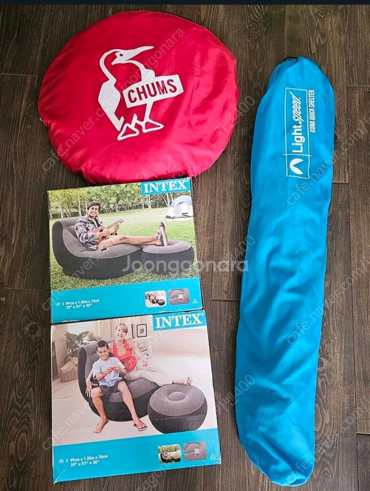 개인정보(거래정보)를 주고받는 행위는 사기에 노출될 수 있으므로 즉시 중고나라로 신고해 주세요첨스그늘막/라이트스피드그늘막/인텍스에어쇼파 첨스 그늘막 - 1,2회 사용함 라이트 스피드 그늘막 - 1,2회 사용함 인텍스 에어 - 1개새상품 , 1,2회 사용함 상태 깨끗합니다. 15만