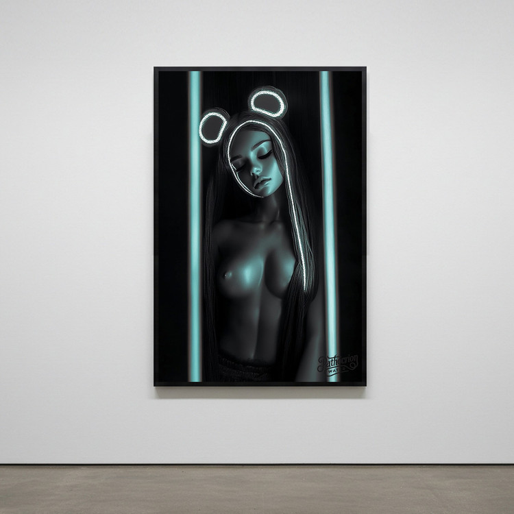 어둠 속의 자화상 그림 액자 팝아트 인테리어소품 캐릭터액자 인물화 아트포스터 감성적인 네온 조명 스타일 대형 인테리