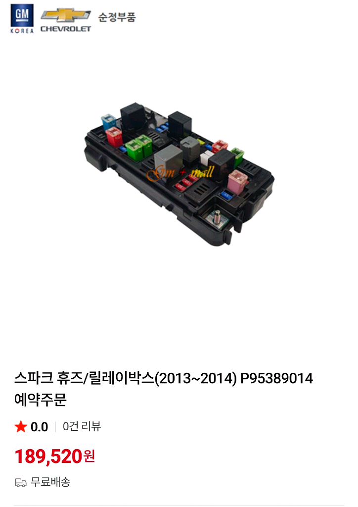 개인정보(거래정보)를 주고받는 행위는 사기에 노출될 수 있으므로 즉시 중고나라로 신고해 주세요13년8월 생산. 14년형 스파크s 엔진룸 퓨즈박스입니다. 이상없는 제품입니다. 반품,환불,교환불가 합니다.