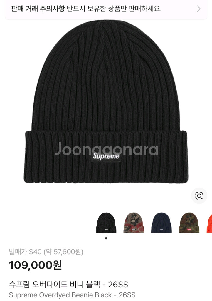 ![[새제품] 슈프림 오버다이드 비니 블랙 - 26SS 이미지](https://img2.joongna.com/media/original/2026/04/17/1776384395039cOe_R3imr.jpg?impolicy=resize)
