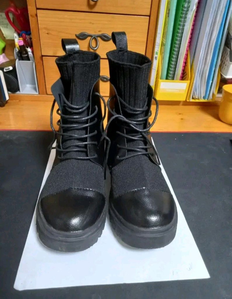 사이즈 ; 235 (정사이즈) 색상 ; 블랙 굽높이 ; 4cm 총높이 ; 19cm 소재 ; 인조가죽 사이즈가 적게 나와서 발볼과 살집이 없으신분이 신으셔야할듯 합니다 옆에 지퍼가 따로없어서 신고벗기가 불편하실수 있습니다 깨끗이 닦아 보관중입니다 관심있고 필요하신분은 연락주세요 배송비 따로 있습니다 직거래 ~ 목3동 주민센터앞 택배가능 (택배비 별도추가)