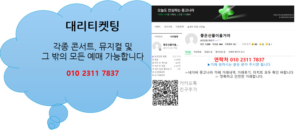 [대리티케팅] 콘서트 뮤지컬 티케팅&취케팅 해드립니다 (오피셜히게단디즘/임윤찬/natori 나토리/HIMEHINA 히메히나/베토벤/엔하이픈/양요섭/XIA 김준수/AB6IX/아묻따밴드/다니엘 시저/NCT JNJM) - 원하시는 공연명 / 예매일시 / 예매처 / 필요한 매수(2장 이상일 경우, 연석인지 아닌지 내용 포함) / 희망 좌석 (대략적 위치)를 적으셔서 게시글 사진에 명시된 채널로 연락주시면 됩니다. ★ 위 내용 기재없이 보내시거나, 누락하시는 사항이 있을 경우, 답변 드리지 않습니다. ★ - 착수금 1만원 - 성공보수 예매난이도와 좌석위치에 따라 상이함 - 예매이력 꾸준히 많이 갖고 있습니다. 정확하고 안전한 거래 가능합니다 / 거래내역 및 더치트 참조하시기 바랍니다.