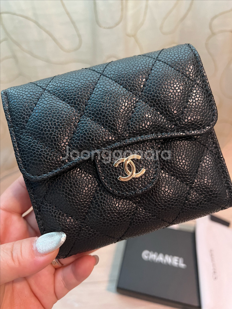 개인정보(거래정보)를 주고받는 행위는 사기에 노출될 수 있으므로 즉시 중고나라로 신고해 주세요정품 캐비어 가죽 반지갑이에요. 퀼팅 디자인과 골드 CC 로고가 포인트이고, 동전 지퍼로 여닫을 수 있습니다 6개의 카드슬롯과 지페공간이 따로 있어요 리본끈까지 풀박스 구성