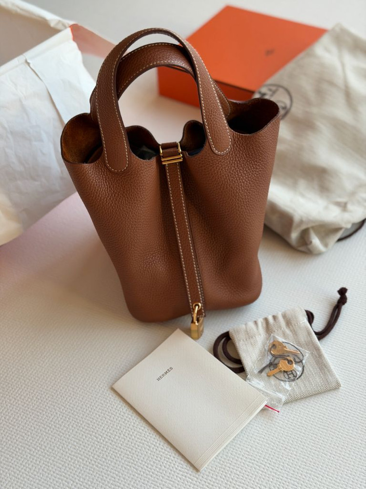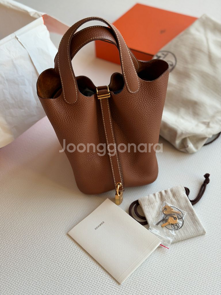 에르메스 피코탄 18 골드 금장입니다. 손이 잘 안가 내놓습니다. y각인, 국내 백화점 구매. 자물쇠 씰 붙어있음. 보관을 잘해서 제가 볼땐 컨디션 좋은데 예민하신분들은 매장 구매 부탁드립니다. 본품, 박스, 인보이스(개인정보 절삭) 풀셋 이너백 함께 드려요. 택배가능, 직거래는 부산 해운대입니다. 가품일시 200프로 보상 개인간 거래로 환불 불가.