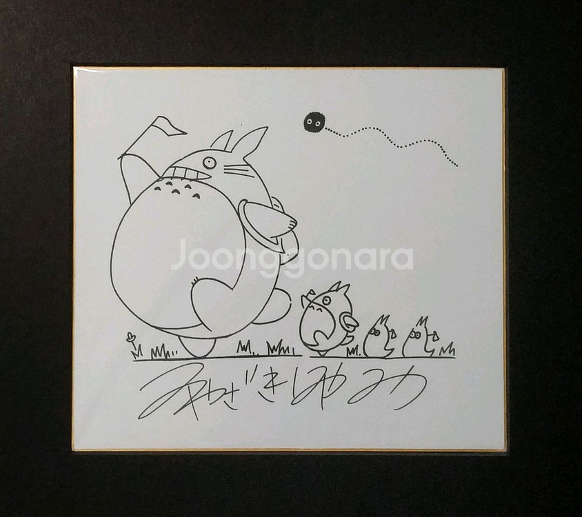 미야자키 하야오 감독의 토토로 친필 사인 드로잉입니다. 시키시 보드에 친필 작화와 서명이 그려져 있습니다. *이동진 평론가 수집품도 함께 사진첨부합니다. * 25년 이상 작가, 영화감독, 배우, 음악인 등 친필서명 전문 콜렉터입니다. 편하게 문의 주세요.