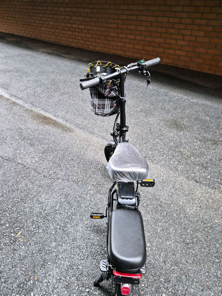 접이식 전기자전거 판매합니다. 접이식으로 보관과 이동이 편리하고, 전체적으로 깔끔한 상태예요. 실용적인 마르쉐드 블랙 색상 접이식 전기 자전거입니다. 선물받은것으로 장보기용으로도 유용합니다. 안장 비닐도 안 뜯은 미사용새상품입니다 스펙 8단 (럭셔리)20A-80km입니다 직접보고 구매하셔도됍니다