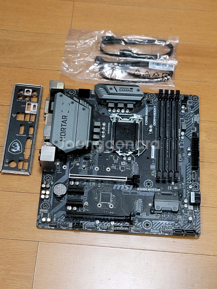 MSI B360M 박격포 메인보드 입니다. CPU 소켓, 램 슬롯 4개, M.2, PCIE 16X 슬롯 모두 정상적으로 동작합니다. 메인보드, 백패널, SATA 케이블 같이 드립니다. 직거래 및 택배거래 가능합니다. 관심 있으신 분께서는 연락 주시기 바랍니다. 감사합니다.