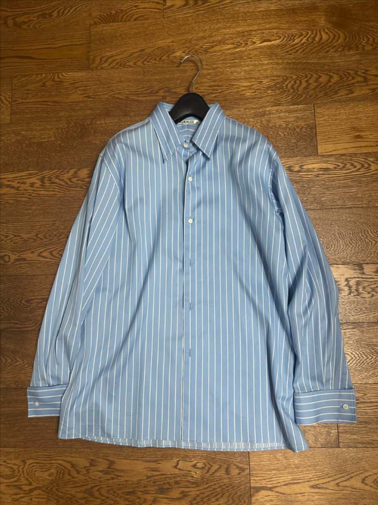 2026 SS 오라리 셔츠입니다 현재 미착용 상태예요 오리리 옷은 왠만하면 거의 다 사는 편이고, 기본 셔츠는 무조건 삽니다 색상 자체는 아주 이뻐요 자켓 안에 입으려고 했었는데 진한 블루에 흰색 스트라이프라서 이너가 너무 튀는 느낌이라 못입었어요 그리고 실키한 느낌을 좋아하지 않아서요 올해 SS 자켓도 실키한 광택이 있어서 고민하다 안샀거든요 실크 혼방이라 살짝 광택 느낌이 있어요 얇은 소재라 여름에는 민소매에 오픈해서 입어도 될 것 같아요 * 사이즈:01(55-날씬66) 실제 색상은 온라인 캡쳐 사진에 가깝습니다