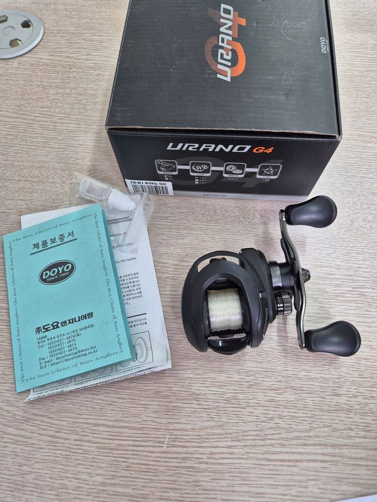 [판매] 도요피싱 우라노 G4 (5점대/우핸들) 풀구성 풀세트 1. 제품명: 도요피싱 우라노 G4 (URANO G4) 2. 스펙: 5점대 기어비 / 우핸들 3. 제품 상태: * 외관: 상태 우수 기능: 릴링감 및 브레이크 작동 이상 없음 5. 구성품 (풀구성): 우라노 G4 본체 도요피싱 정품 보증서 정품 박스 및 설명서 전용 오일 6. 상세 설명: 가성비 최고의 베이트릴, 도요 우라노 G4 모델입니다. 5점대 기어비로 크랭크베이트나 스피너베이트 등 권사량이 필요한 루어 운용에 탁월합니다. 정품 보증서를 포함한 박스 풀구성이며, 오일 등 소모품도 그대로 보관 중입니다. 아껴서 사용했기에 전반적인 상태 매우 깨끗하고 좋습니다. 릴링감도 부드러우며 바로 현장에 투입 가능한 컨디션입니다.