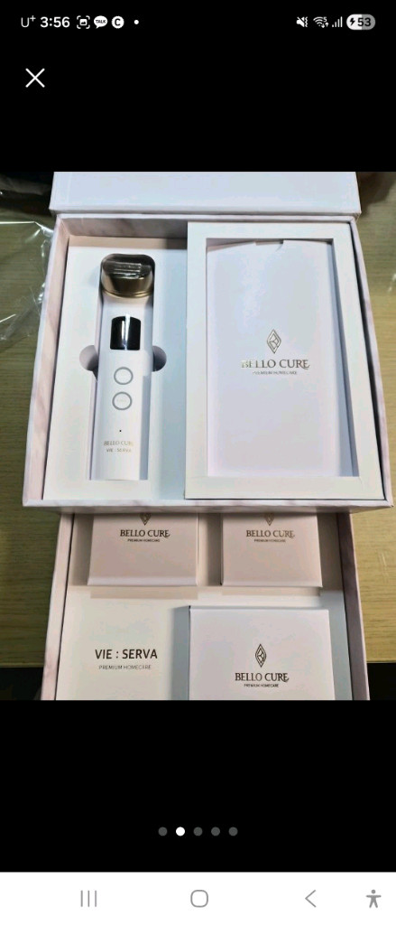 집에서 간편하게 피부 관리를 할 수 있는 벨로큐어 비세르바 고주파 마사지기입니다. LED와 고주파, EMS 기능으로 탄력부터 광채까지 케어할 수 있습니다. 효과가 좋아 2개 구매 후 사용하다. 새상품으로 교환 받았습니다. 1개면 충분 할 것 같아 판매합니다.