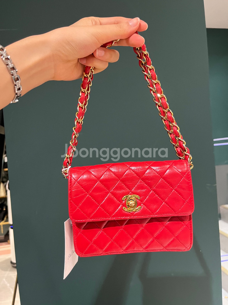 개인정보(거래정보)를 주고받는 행위는 사기에 노출될 수 있으므로 즉시 중고나라로 신고해 주세요시그니처 퀼팅 디자인의 미듐 사이즈 레드 컬러 체인백이에요. 골드 체인과 로고가 포인트이고, 전체적으로 깔끔한 상태입니다. 크로스백으로도 착용 가능한 실용적인 아이템이에요. 빈티지샵에서 구매한거고 개런티카드 있습니다!