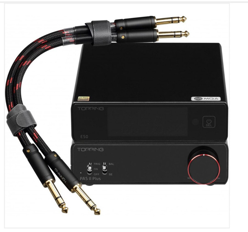 토핑 (Topping) PA-5 (인티 Amp) + E50 (DAC) 판매합니다. 색상 : Black Topping에서 생산한 제품이며 사이즈가 compact 하고 S/N 비가 높아서 인기 있는 D-Class 증폭방식의 Amp 와 DAC 입니다. E50은 Tidal MQA 까지 재생가능하며 , 구입년도는 22년 이나 실 사용시간은 길지 않습니다. 구입하고 얼마되지 않아서 PA-5 의 잡음 발생으로 중국 본사에 물건을 보내서 a/s 받았으며 이후 현재까지 문제 없이 작동중입니다. E50 최신 펌웨어 (V 1.09) 까지 업데이트 되어 있습니다. 외관 기스 없고, 작동상태 문제 없습니다. 박스는 dac 모델만 있습니다. 추가 구매한 액세서리 가.Canalys HiFi - Audio USB Cable 3m usb A-B 케이블, 빨간색+검은색 (3만원) - Topping DAC - 컴퓨터 연결용 , 나. Topping DAC - AMP 연결용 밸런스 뉴트릭 TRS 케이블 (2만원) 다. Topping 정품 Audio Acryl Rack (5만원 )
