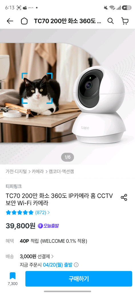 ![[2개] 티피링크 TC70 C200 200만 화소 360도 IP카메라 홈 CCTV 보안 Wifi 카메라 이미지](https://img2.joongna.com/media/original/2026/04/17/17764211324383oE_fF9Fg.jpg?impolicy=resize)