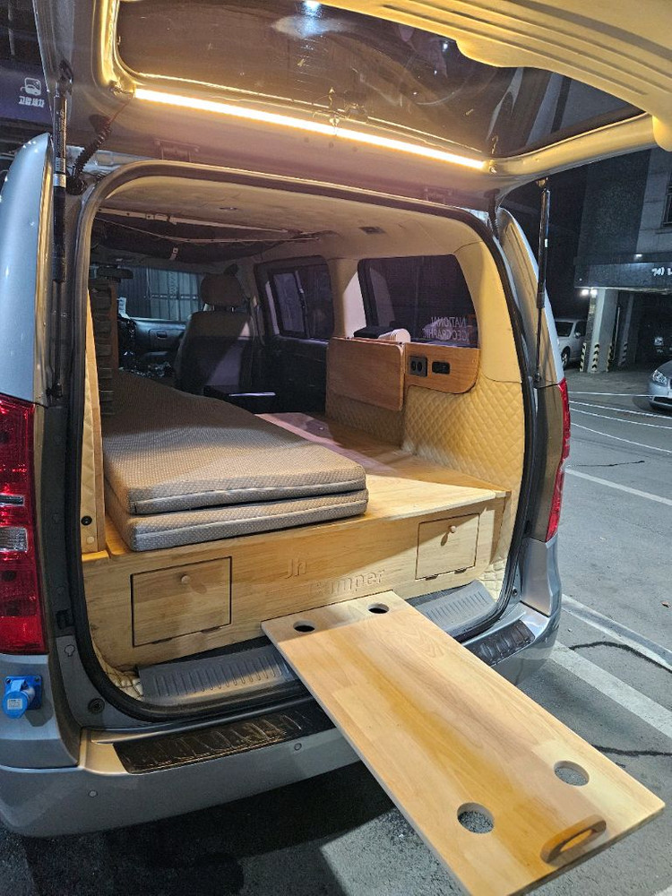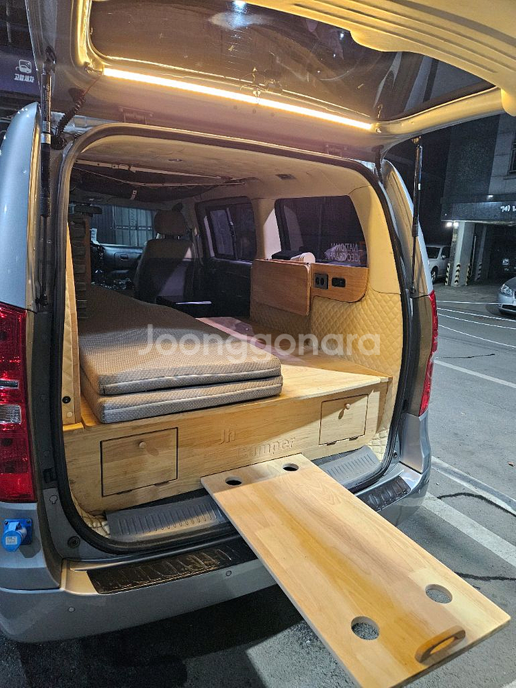 내부가 깔끔하게 꾸며진 캠핑카예요. 베이지색 가죽시트와 원목 바닥재로 고급스럽고, 캠핑과 여행을 위한 완벽한 차량입니다. 주행거리 13만km대 소폭증가합니다. 차량내부보다도 메인 차량관리를 자가용처럼 했습니다.오일,소모품등등 다니던정비소 내역 확인가능. 캠핑카 구조변경후 1대로 구입유지중입니다. 3년넘게 운행하며 차량문제 없습니다. 사고x 캠핑구조보다 메인차량이 더중요합니다. 자부합니다. 차량 설명 3인승 구조변경완료. 기존12인승이라 자동차세 5만원대. 인산철 300 인버터 2000 주행충전기 한전충전기 태양광패널( 수리필요해보입니다) 제거해도됩니다. 사실상 필요거의 x 무시동 히터 티비 냉장고dc 수전 (탈부착) 청.폐 총40리터(20리터씩) 전자렌지 보이는모든 서랍은 바닥중간 배터리함 빼고 모두수납장입니다. 캠핑보다는 낚시를 자주다녀서 잠깐자고 배타러다니는 용도로 많이썼습니다. 언제든지 오셔서 보셔도되고, 문자주시면 연락드리겠습니다. 사용감은 있지만 바로 캠핑가실 수 있는 조건입니다~! 오셔서 직접 보시길 추천드립니다.