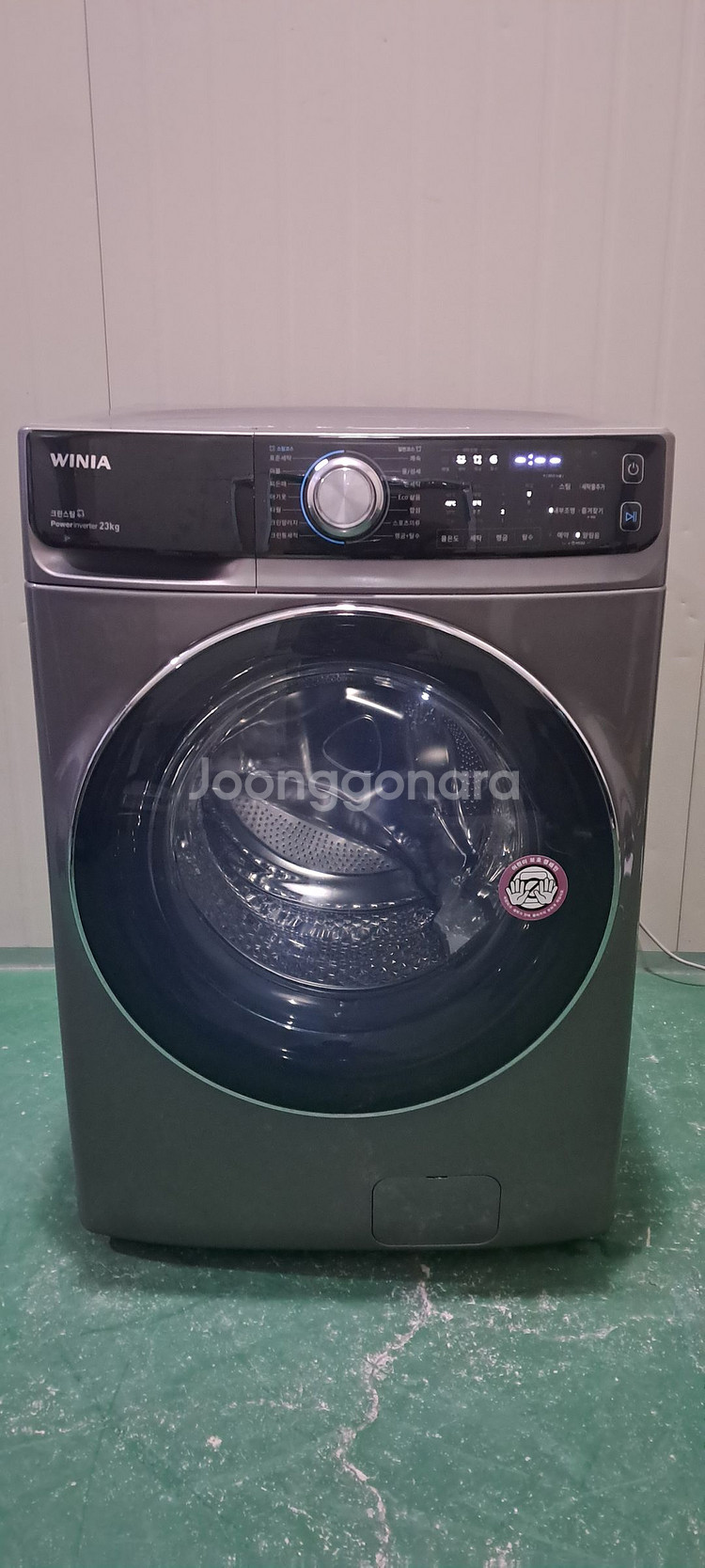 ★★ 2768 위니아 23KG 드럼세탁기(블랙) ★★ ▶ 모델명 : WWD23GDD ▶ 제품용량/사이즈 : 23KG / 가로 686 X 깊이 869 X 높이 1010mm ▶ 22년식으로 연식상태, 외관상태, 성능상태 양호한 제품입니다. ▶ 23KG 대용량으로 에너지소비효율 1등급, 인버터 모터 탑재된 제품입니다. ▶ 클린스팀/클린알러지코스 채용, 표준세탁모드 및 이불빨래/찌든때/쾌속 모드 등 다양한 기능있습니다. ▶ 고압스팀 통세척 완료, 세탁물찌꺼기없이 깔끔한 상태라서 바로 사용가능합니다. ▶ 전체적으로 깨끗하나 미세한 사용감있습니다(사진 참조). ▶ 다른 제품을 보시려면 아래 링크를 클릭해주십시요. https://web.joongna.com/store/3698765 ※ 다년간의 경험과 노하우로 최상의 품질, 합리적 가격, 철저한 AS, 신뢰할 수 있는 제품을 판매하는 중고팡입니다. ※ 에너지 절약, CO2배출 절감을 위해 철저한 제품관리와 친환경 자원순환을 지향하는 중고가전 전문업체입니다. ※ 제품사진은 무보정 실물사진이며 허위 정보매물 또는 제품을 취급하지 않습니다. ※ 철저한 제품상태 확인/고압스팀 살균/친환경세제 사용/자연 건조까지 구석구석 깨끗하게 세척하여 판매하고 있습니다. ※ 제품구입일 기준으로 AS 3개월 보장해드리니 안심하시고 구매해 주십시요. ※ 구입전 설치장소, 설치환경 등을 미리 확인하시고 설치여부가 애매한 경우는 문의주십시요. ※ 사용하시던 폐가전은 유상 보상매입 또는 무상수거 가능하니 문의주십시요. ※ 서울/경기/인천권 배송가능구요. 지방배송의 경우 직접 배송 또는 화물택배로 가능하니 미리 문의주십시요. ※ 친절한 전문기사가 배송 및 설치까지 깔끔하게 진행해드립니다.