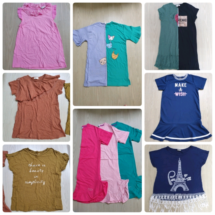 낱개 구매 및 상세설명은 판매자 다른상품에 있습니다. 티셔츠 12개 일괄. 꼬망스 핑크 150 페르미츠 2개. 브라운 카키 140 앤디애플 롱 티셔츠. 소라 그린 150 롱 원피스. 진핑크 연핑크 그린 150. 새상품 꼬망스 밑단 수술. 그린 블랙 140 인디고뱅크. 네이비 150 파리 에펠탑 밑단 자수 수술 장식 140 사용감 있지만 가볍게 입기는 괜찮아요~ 중고인 점 감안하시고 편하게 입으실 분 찜이요~ 보관상 구김 있습니다. 사진 참고해 주시고 예민하신 분은 피해주세요. 택배 4,000원 cu알뜰택배 2,000원 (1kg 이상 비용 추가) 택배비는 별도입니다. 택포 문의는 사양해요. 반품, 환불 어려우니 신중한 구매 부탁드립니다.