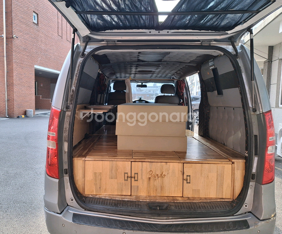 2011년 37.4만km 원래5밴 차량인데 2022년 캠핑카로 구조변경하면서 1열으로 변경하고 인테리어 시공 했습니다 현재 전기 등 옵션들은 없는 상태이고 4등급 차량으로 알고 있습니다. 22년도 엔진 주변으로 크게 수리 투자했는데 외관은 여러군데 상처, 굴곡, 박리 있습니다. 원목의 밑판과 수납장이 운전석 시트 바로 뒤에까지 있고 조수석 뒤에는 수납없이 들여놓은 공간 구조 형식 특징으로 좌식이고 수납과 침대 공간 넓습니다. 구매하신 후 배터리랑 전기넣고 근거리에 거주용도, 최소비용 운영 하는데에 좋습니다. 이 차량 중고 33만키로 가져와서 수리비에 잔고장, 창문필름 등 4백이상 한거같고 그 외 구조변경이나 인테리어는 별도 투자했습니다. 다시 정리하면 1열 구조변경 / 전기관련 등 옵션 無 / 외관 좋지 않음 / 운전석 뒤까지 원목 판과 수납 차확인은 경주이고, 계약금 입금 후 차랑이전은 대구나 울산 등에서 가능