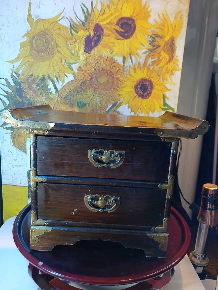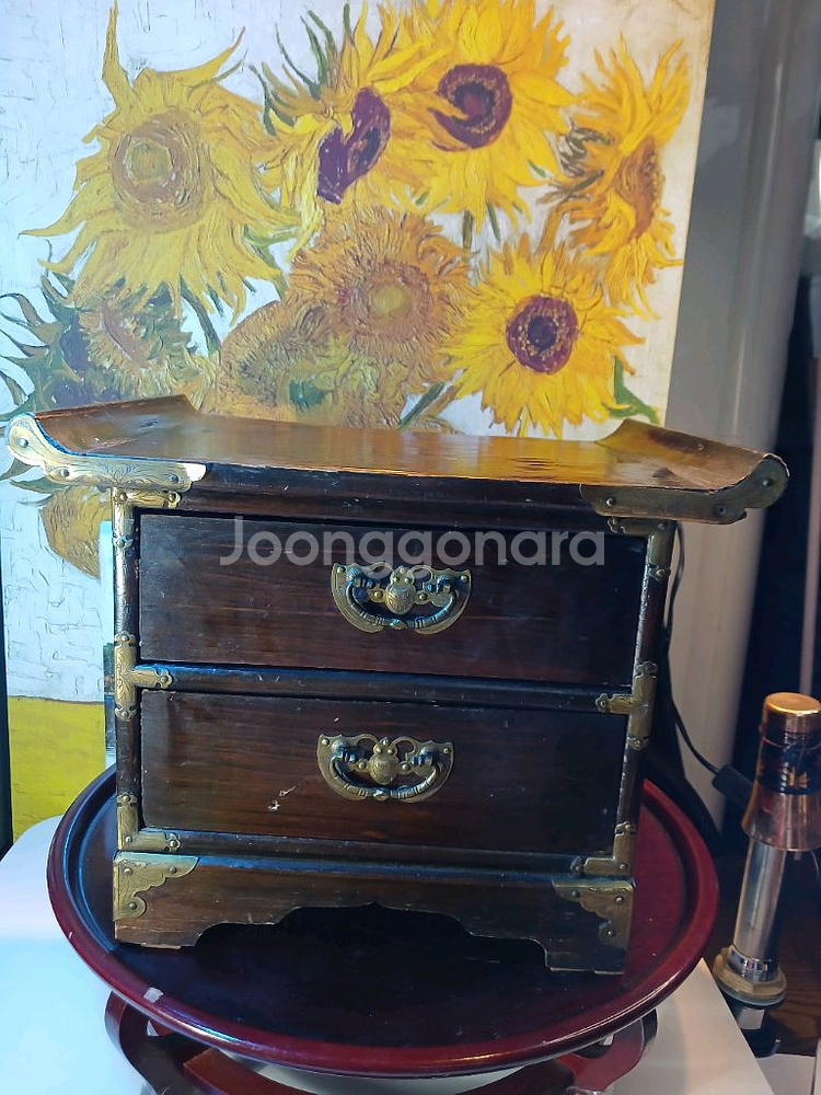 개인정보(거래정보)를 주고받는 행위는 사기에 노출될 수 있으므로 즉시 중고나라로 신고해 주세요클래식한 디자인의 빈티지 원목 서랍장이에요. 골드 손잡이와 우아한 조각 장식이 고급스러운 느낌을 주며, 사용감은 있지만 전체적으로 양호한 상태입니다.