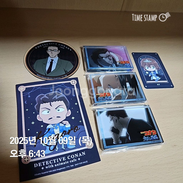 1. 상품명 : 명탐정 코난 애니메이트 카페 굿즈 (2025년 명탐정 코난 척안의 잔상) - 야마토 칸스케 (양만호), 우에하라 유이 (우하라), 카자미 유우야 (심재형), 하이바라 아이 (홍장미), 모리 코고로 (유명한) 2. 가격 : 13,000원 (택배비 포함) ※ 세트로 판매하며 개별 판매하지 않습니다. 3. 사용여부 : 미사용 ※ 상품 확인을 위해 포장을 뜯었으나 장식용으로도 사용하지 않고 사진 촬영 시에만 위와 같이 잠시 개봉하였습니다. ※ 아크릴 블록 3개의 경우 비닐을 뜯지 않았습니다. (아크릴 블록 비닐 미개봉) 4. 판매목적 : 특정 캐릭터 이외 상품 처분 5. 주의사항 - 환불, 흥정, 잠수 불가하오니 신중한 거래 부탁드립니다. - 하이바라 아이 굿즈는 모리 코고로 굿즈와 함께 같은 봉투에 넣어 보관하고 있습니다. - 모리 코고로 포스터에 구김이 있습니다. 구매 전 사진을 꼼꼼히 봐 주시기를 부탁드립니다. - 하이바라 아이 굿즈 '글자' 아래쪽에 약한 스크래치가 있습니다. 구매 전 주의해 주십시오. - 이 외 미처 발견하지 못한 미세한 스크래치가 있을 수 있으므로 예민하신 분께서는 거래를 피해주시기를 부탁드립니다.