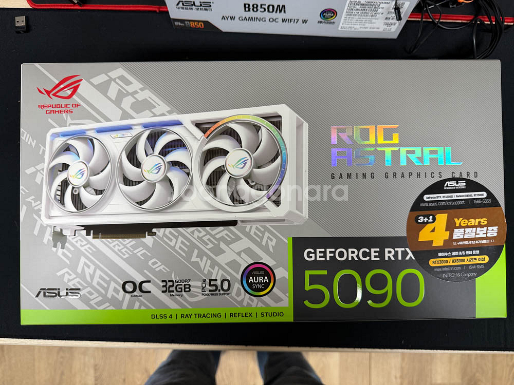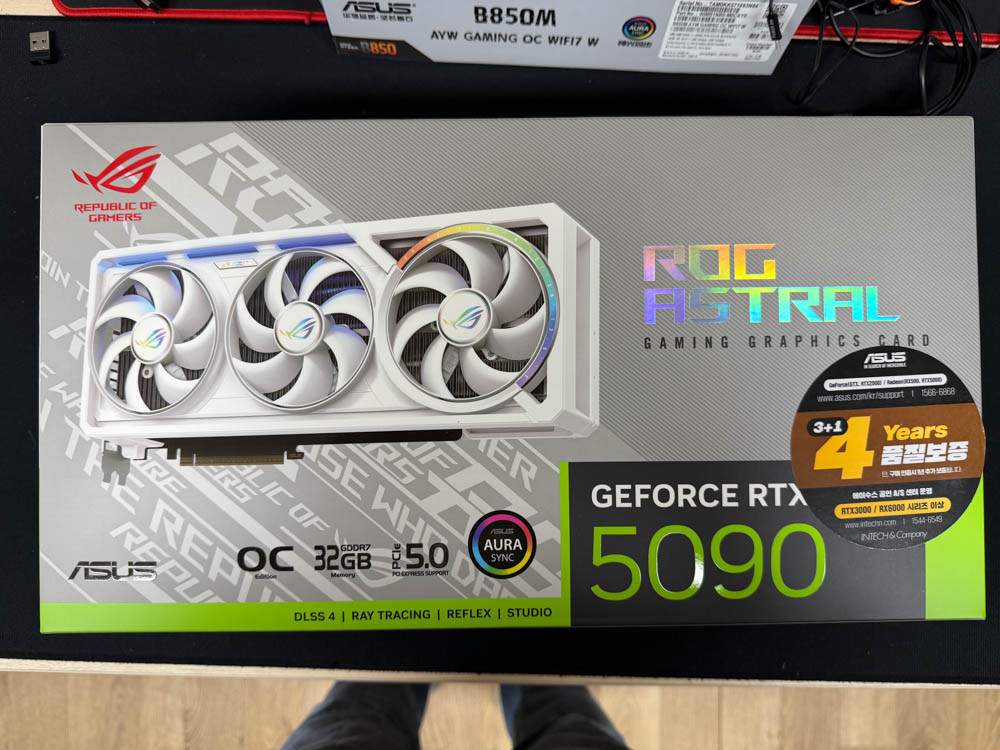 ASUS ROG Astral 지포스 RTX 5090 WHITE 팝니다 연장신청 해놓은 상태 입니다 판매금액은 610만원 (택포) 직거래 오시면 교통비 빼드립니다 서식지가 촌동네 입니다 (충남 태안) 연락주세요